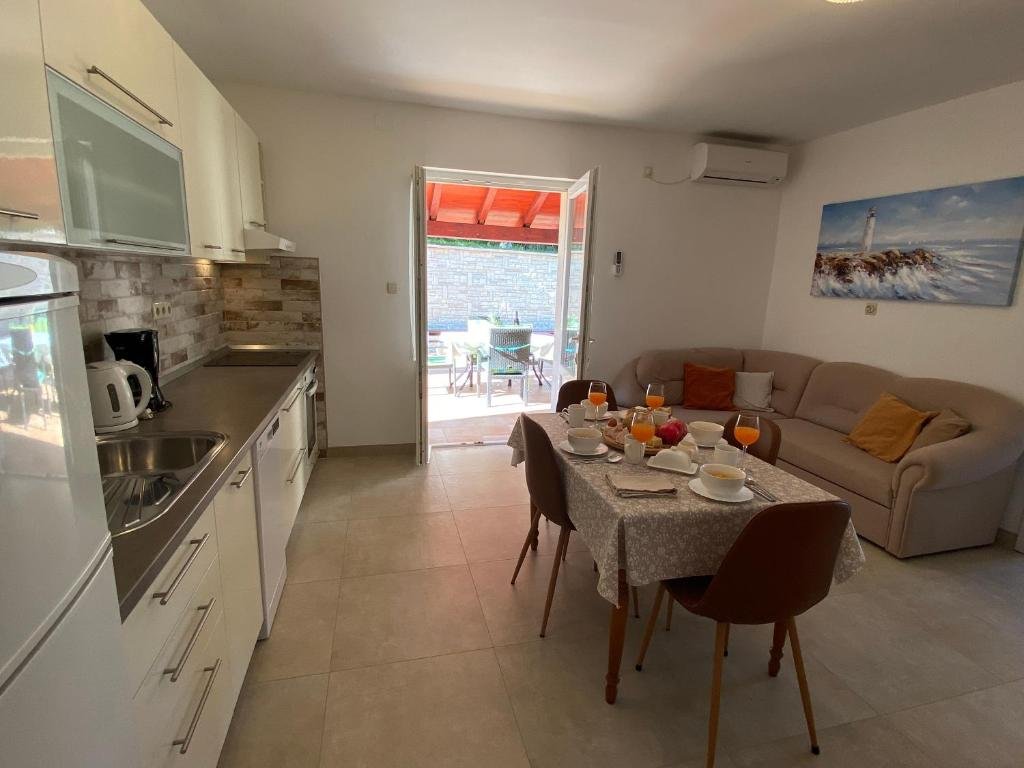 Ovaj prostrani apartman ima 1 dnevni boravak, 2 odvojene spavaće sobe i 1 kupaonicu s tušem i besplatnim toaletnim potrepštinama. Gosti mogu pripremati obroke u kuhinji koja je opremljena pločom za kuhanje, hladnjakom, perilicom posuđa i posuđem. Klimatizirani apartman ima TV ravnog ekrana sa satelitskim programima, perilicu rublja, privatni ulaz, zvučno izolirane zidove i pogled na more. Jedinica ima 3 kreveta.