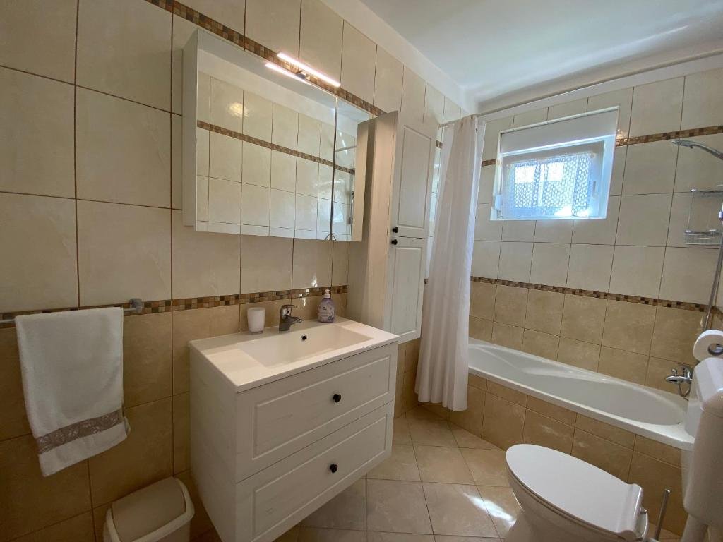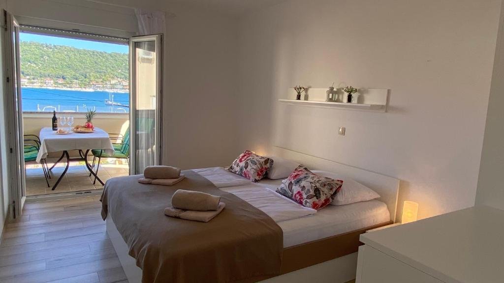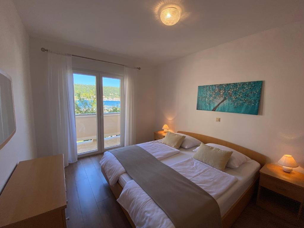 Ovaj prostrani apartman ima 1 dnevni boravak, 2 odvojene spavaće sobe i 1 kupaonicu s tušem i besplatnim toaletnim potrepštinama. Gosti mogu pripremati obroke u kuhinji koja je opremljena pločom za kuhanje, hladnjakom, perilicom posuđa i posuđem. Klimatizirani apartman ima TV ravnog ekrana sa satelitskim programima, perilicu rublja, privatni ulaz, zvučno izolirane zidove i pogled na more. Jedinica ima 3 kreveta.